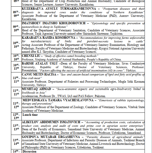 MINISTRY OF HIGHER EDUCATION, SCIENCE AND INNOVATIONS OF THE REPUBLIC OF UZBEKISTAN COMMITTEE OF VETERINARY AND LIVESTOCK DEVELOPMENT UNDER THE MINISTRY OF AGRICULTURE OF THE REPUBLIC OF UZBEKISTAN NUKUS BRANCH OF THE SAMARKAND STATE UNIVERSITY OF VETERINARY MEDICINE, LIVESTOCK AND BIOTECHNOLOGIES INTERNATIONAL SCIENTIFIC AND SCIENTIFIC-TECHNICAL CONFERENCE ON MODERN INNOVATIVE SOLUTIONS IN VETERINARY MEDICINE AND ANIMAL HUSBANDRY IN THE ARAL SEA REGION: OPPORTUNITIES, CHALLENGES, AND PROSPECTS INVITATION AND PROGRAM may 25, 2026 |