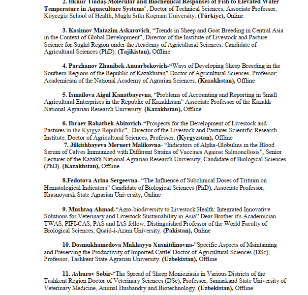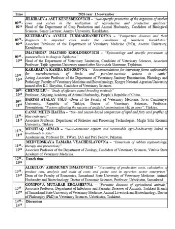Dear Friends!We invite you and your team to the International Scientific and Scientific-Technical Conference on "Modern Innovative Solutions in Veterinary Medicine and Animal Husbandry in the Aral Sea Region: Opportunities, Challenges, and Prospects" on may 25, 2026 at the Nukus Branch of the Samarkand State University of Veterinary Medicine, Animal Husbandry and Biotechnology.The plenary meeting of the conference will be held on November 13, 2026 at 09:00 at the "Aq Kush" complex in Nukus, Republic of Karakalpakstan.The conference will conduct its work in the following sections: