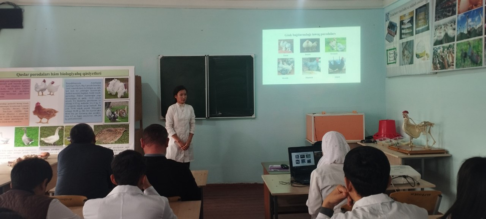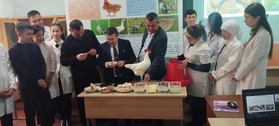 На кафедре «Зооинженерия» Нукусского филиала Самаркандского государственного университета ветеринарной медицины, животноводства и биотехнологии прошел очередной кружок «Юные скотоводы» на тему «Продуктивность сельскохозяйственной птицы».