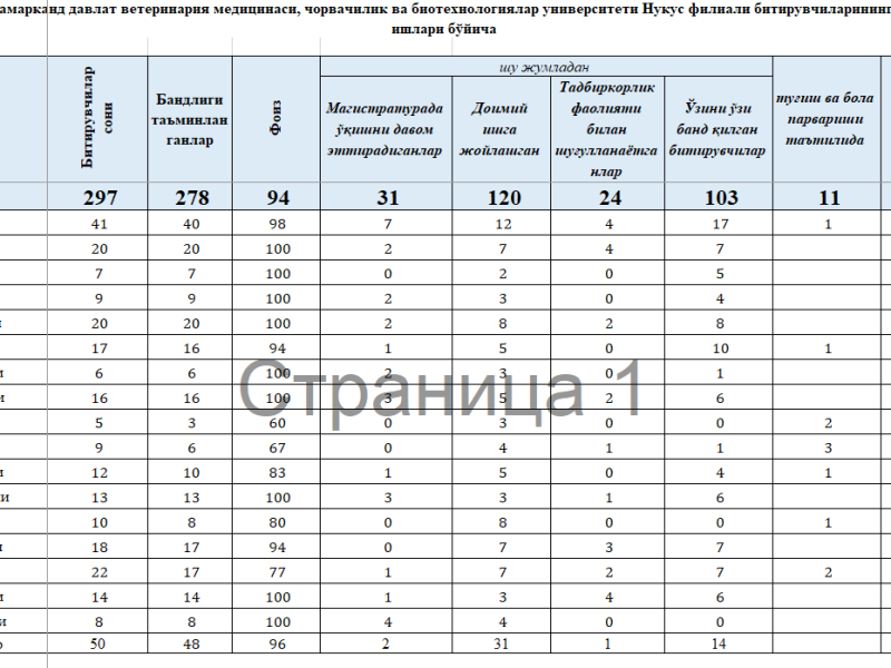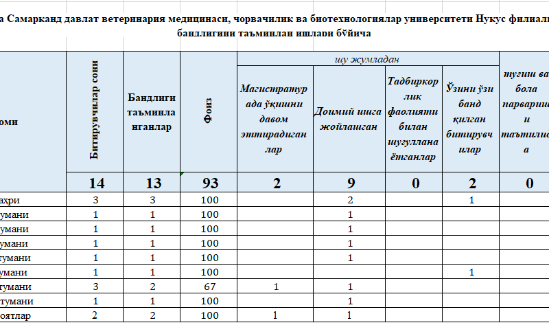 Karyera orayı » SAMARQAND VETERINARIYA MEDITSINASI INSTITUTI NUKUS FILIAL
