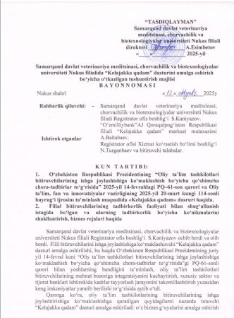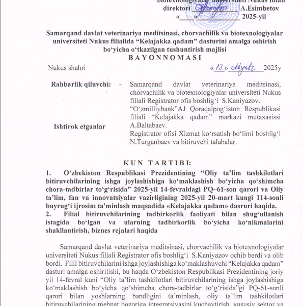 Kelajakka qadam » SAMARQAND VETERINARIYA MEDITSINASI INSTITUTI NUKUS FILIAL