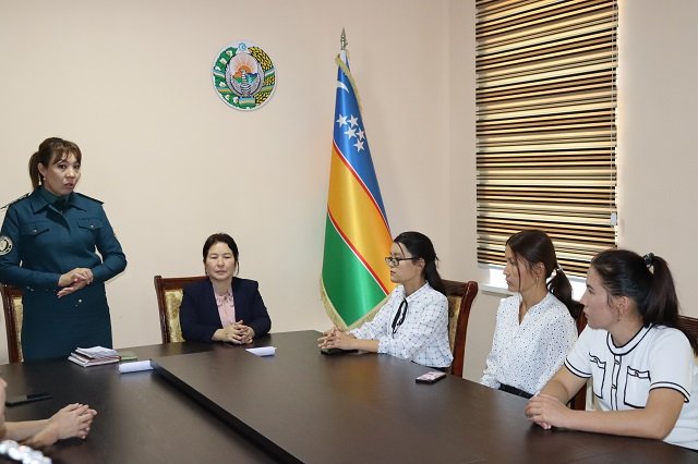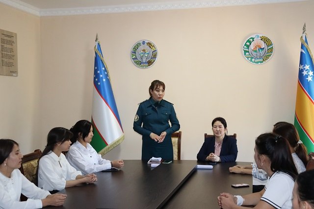 Усы жылдыӊ 13-октябрь күни Самарқанд мәмлекетлик ветеринария медицинасы, шарўашылық ҳәм биотехнологиялар университети Нөкис филиалында ҳәптениӊ ҳәр пийшемби күни «Ҳуқықбузарлықлар профилактикасы күни» деп жәрияланғаны мүнәсибети менен “Ҳаял-қызлар арасында алдаўшылықтыӊ алдын алыў айлығы” шеӊберинде ушырасыў шөлкемлестирилди. Онда Нөкис қаласы ишки ислер органлары жумысларын муўапықластырыў басқармасы Ҳаял-қызлар мәселелери бойынша аға инспектор, майор А.Наменова, Жаслар менен ислесиў, руўхыйлық ҳәм ағартыўшылық бөлими баслығы А.Сейткамалов, профилактика инспекторы, аға лейтенант Қ.Қайпназаров, Ҳаял-қызлар мәселелери бойынша директор мәсләҳатшиси Г.Ешмуратова ҳәмде студент-жаслар қатнасты. Илажды А.Сейткамалов ашып берип, қатнасыўшыларды ушырасыў мийманлары менен таныстырып өтти. Буннан кейин А.Наменова сөзге шығып, мәмлекетимизде Ҳаял-қызлар арасында жынаятшылықтыӊ алдын алыў бойынша алып әмелге асырылып атырған ис-илажлар ҳәм олар арасында жол қойылған алдаўшылық жынаятыныӊ түрлери ҳаққында толық түрде тоқталып өтти. Бул жынаяттыӊ түрлери ҳәм көринислери ҳаққында студент-қызларға толық мағлыўматларды берип өтти. Усы сыяқлы унамсыз мақсетлерди гөзлеген алдаўшылардыӊ торына түсип қалмаўды пуқараларымыз арасында кеӊ түрде ен жайдырыў зәрүр екенлиги айрықша атап өтилди. А.Наменова тәрепинен усы жынаят түри бойынша турмыслық мысаллар келтирилди. Илаж қатнасыўшыларында және де кеӊ түсиниклерди пайда етиў мақсетинде темаға байланыслы тарқатпа материаллар студентлерге тарқатылды. Сондай-ақ, студентлер турақ жайында жасайтуғын студент-қызлар жағдайынан хабар алынып, оларға бүгинги тема бойынша толық мағлыўматлар берилди. Ушырасыў даўамында студентлер пайдалы мағлыўматларға ийе болды.