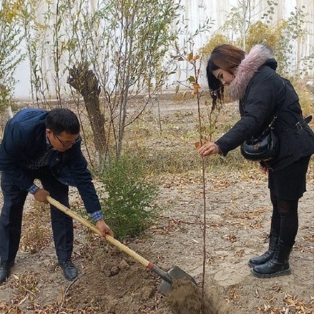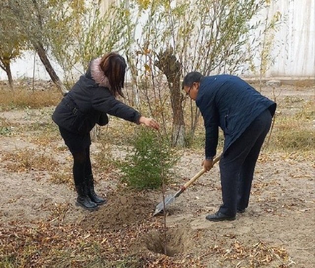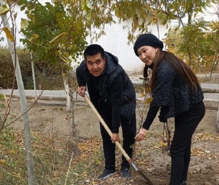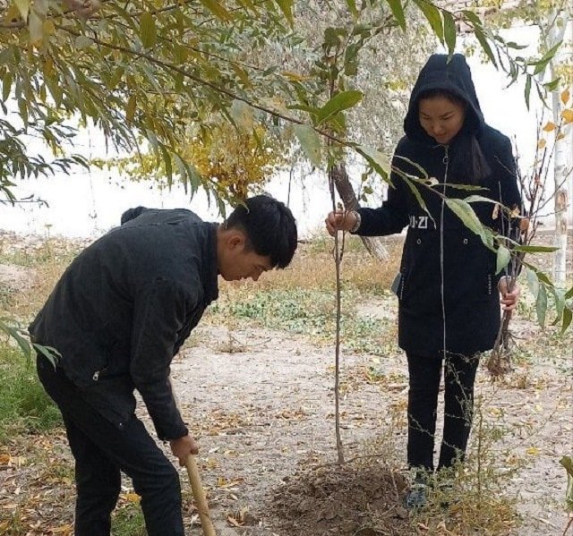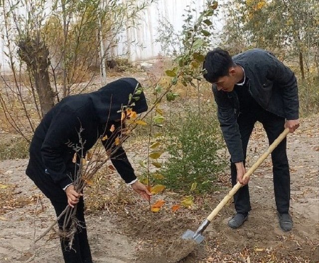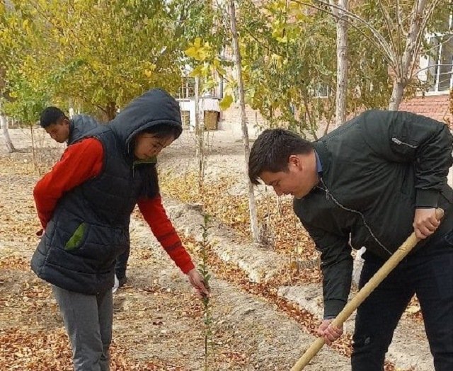 Тьютор ҳәм студентлер тәрепинен мийўе ҳәм декоратив терек нәллери отырғызылды