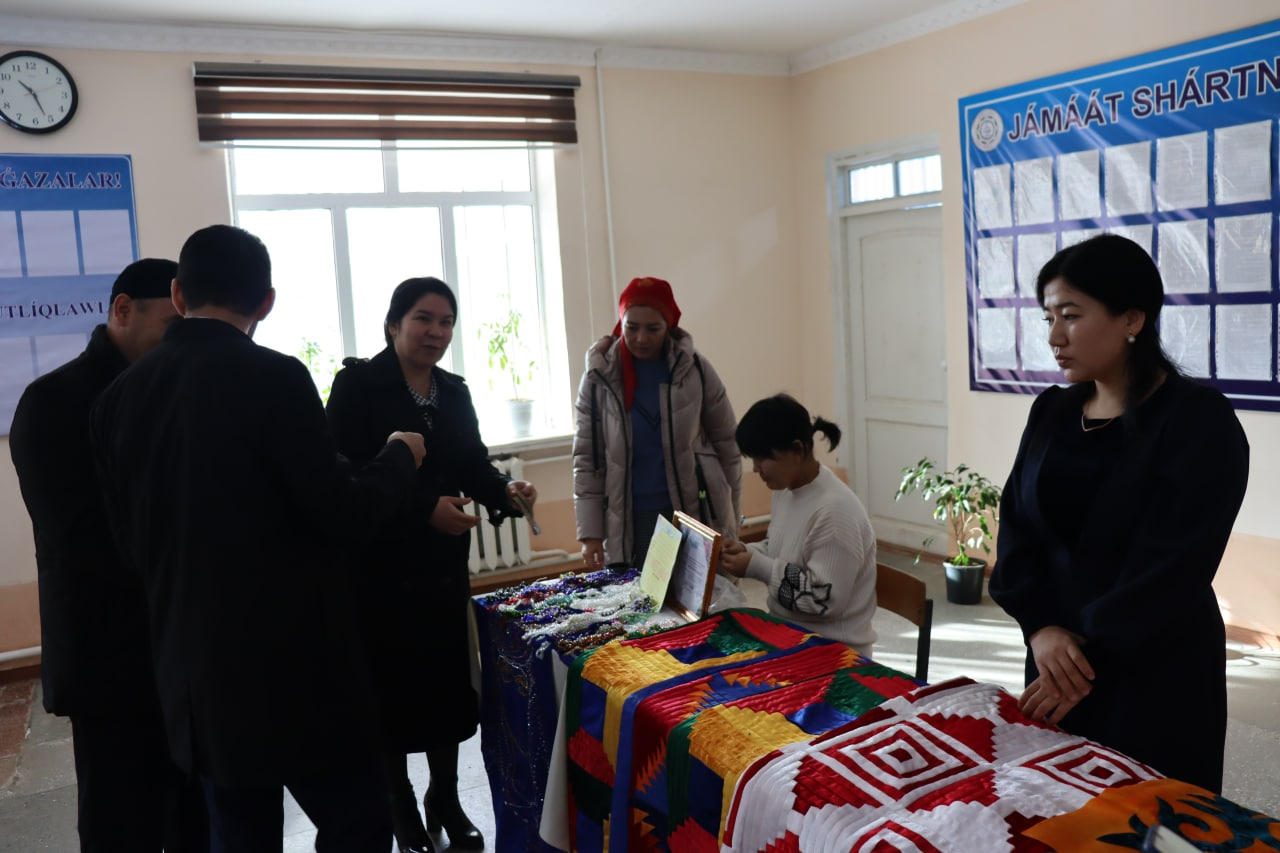 Ushırasıwǵa kelgen taraw qánigeleri dáslep filial ónerli student-qızları tárepinen qol miyneti menen tayarlanǵan kórgizbeler menen tanısıp ózlerınıń unamlı pikirlerin bildirip ótti.