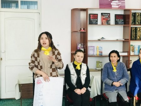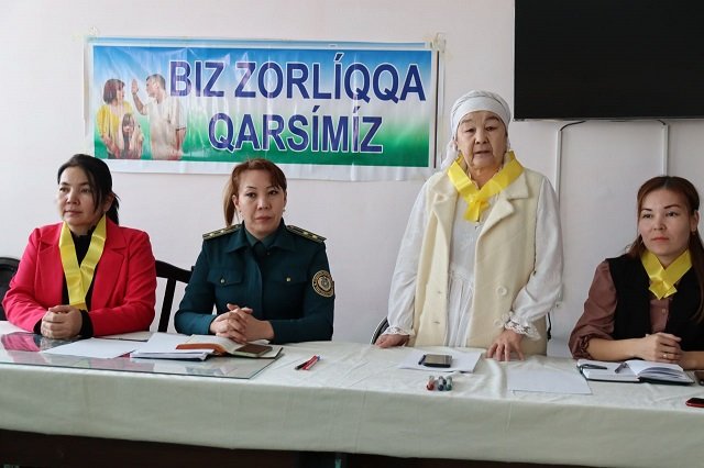 Атап айтқанда, А.Наменова ҳәм Қ.Қайпназаровлар тәрепинен кейинги жыллары мәмлекетимизде Ҳаял-қызлардыӊ ҳуқықларын қорғаў, олардыӊ жәмийеттеги абырайын ҳәм ролин асырыў, сондай-ақ оларды ҳәр тәреплеме қоллап-қуўатлаў бағдарында алып барылып атырған нәтийжели жумыслар ҳаққында айрықша атап өтилди. Қорғаў ордерин бериў тәртиби бойынша турмыслық мысаллар менен кеӊ түсиниклер берип өтилди. Сөзге шығып сөйлеўлер жуўмақланғаннан кейин З.Даўлетова қатнасыўшыларды еки командаға бөлип, ортаға қызықлы теманы таслады ҳәм усы мәселе шеӊберинде қызғын түрде додалаў алып барылды. Команда сәрдарлары қалған ағзалары менен ойласып, плакатларға мәселе бойынша өз пикирлерин ҳәм шешимди жазып, сол бойынша түсиник берди. Бир сөз айтқанда дебатта тийисли мәселе айрықша додаланды. Илаж жуўмағында мийманлар ҳәм психолог тәрепинен додалаўға арналған дебат бойынша қалыс пикирлер билдирип өтилди. Усы сыяқлы дебатларды шөлкемлестирип барыў арқалы, филиал ҳаял-қызлары арасында «Биз зорлыққа қарсымыз» темасы бойынша және де кеӊ түсиниклер қәлиплестирилип барылады. Буннан былайда тема шеӊберинде қызықлы илажларды өткерип барыў атап өтилди.