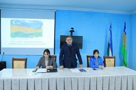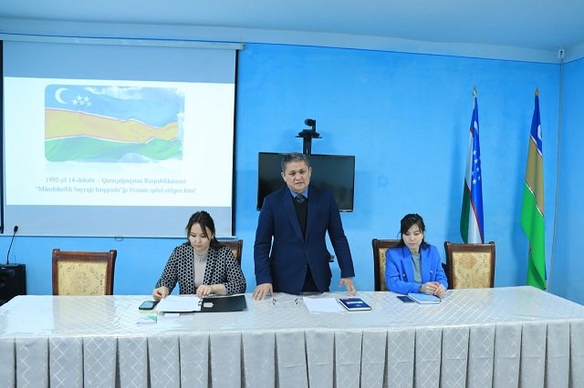Бәршемизге белгили, бүгин «Қарақалпақстан Республикасының мәмлекетлик байрағы ҳаққында»ғы Нызамы қабыл етилгенлигине 30 жыл толды. Усы сәне мүнәсибети менен Самарқанд мәмлекетлик ветеринария медицинасы, шарўашылық ҳәм биотехнологиялар университети Нөкис филиалыныӊ мәжилислер залында илаж шөлкемлестирилди. Илажда филиал директоры А.Есимбетов, Нөкис қаласы әдиллик бөлими жеткеши мәсләҳатшиси Д.Наўрызбаева, «Мадад» мәмлекетлик емес коммерциялық емес шөлкеминиӊ Нөкис қаласы ҳуқықый мәслаҳат бюросы бас қәнигеси А.Алдамуратова, оқытыўшылар ҳәм студент-жаслар қатнасты. Дәслеп, Өзбекстан ҳәм Қарақалпақстан Республикаларының мәмлекетлик гимнлери жаңлады. А.Есимбетов илажды кирис сөзи менен ашты ҳәм бүгинги қутлы сәне мүнәсибети менен бәршени қутлықлап өтти.