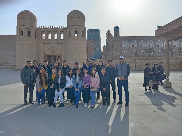 Filial studentleriniń bos waqıtların mazmunlı shólkemlestiriw, olardı jurtımızdaǵı mádeniy hám tariyxıy estelikler menen jaqınnan tanıstırıw, sonıń menen birge ishki turizmdi rawajlandırıwǵa úles qosıw maqsetinde buxgalteriya esabı hám audit (tarmaqlar boyınsha) qánigeliginiń 1-kurs 109-topar studentleri tyutorı A.Baymuratov basshılıǵında Xiywa qalasına sayaxat shólkemlestirildi. Belgili bolǵanınday bul jer turistler hám sayaxatshılardıń dıqqat orayındaǵı sayaxat etetuǵın orınlardan biri bolıp sanaladı.