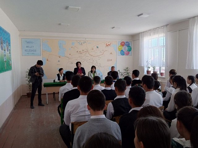 Filial oqıtıwshısı Xojeli qalasındaǵı mektep oqıwshıları menen ushırastı