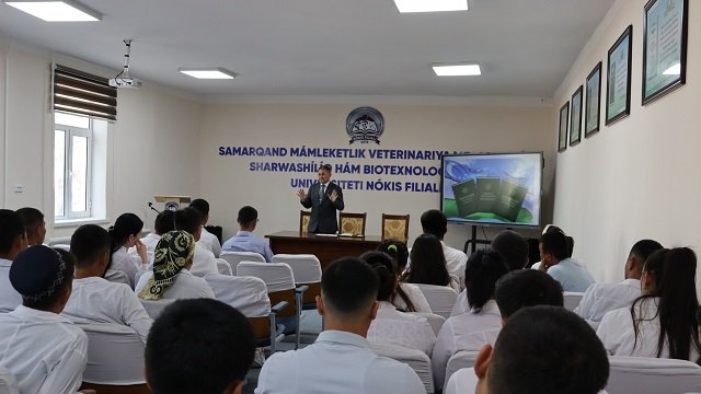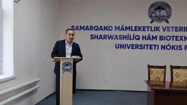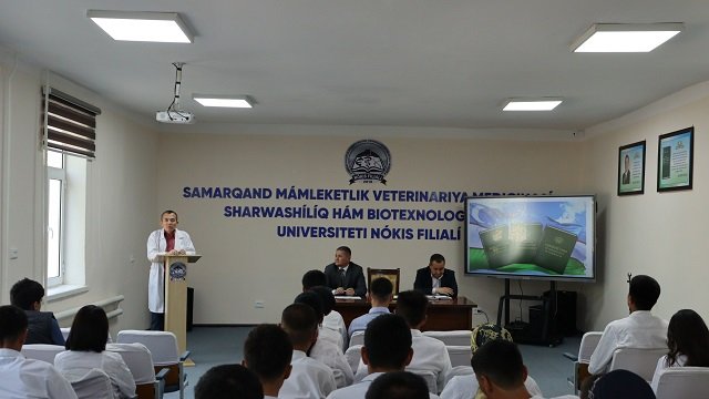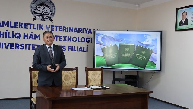 Usı jıldıń 26 aprel kúni Samarqand mámleketlik veterinariya medicinası, sharwashılıq hám biotexnologiyalar universiteti Nókis filialınıń direktorı Adilbay Esimbetov basshılıǵında sırtqı tálim baǵdarı studentlerine «Konstituciyalıq reformalar –insan qádiri ushın» atamasında ushırasıw ótkerildi. Ilaj basında A.Esimbetov sózge shıǵıp elimizde alıp barılıp atırǵan Konstituciyalıq reformalar tikelley insan qádiri hám abıroyın ulıǵlawǵa qaratılǵanlıǵı, xalqımızdıń párawan hám abadan turmısın bunnan bılayda jaqsılawǵa xızmet etiwi haqqında toqtaldı.
