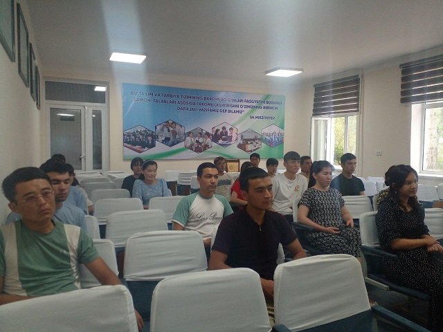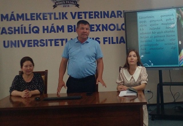 Dáslep, A.Seytkamalov filial student-jasları arasında shólkemlestirilip atırǵan ruwxıy-aǵartıwshılıq ilajları hám sport jarısları, jataqxana studentleriniń olarǵa belsene qatnası haqqında toqtalıp ótti. Studentler turaq jayındaǵı tártip-intizam hám jaslardıń bos waqıtların paydalı maqsetlerge jumsawı ushın qolay sharayatlardı jaratıwdıń áhmiyeti tuwralı da aytıp ótti. Bunnan soń G.Eshmuratova sózge shıǵıp, student-qızlarǵa sóylew hám kiyiniw mádeniyatı tuwralı keń túrde túsinik berip ótti. Sonday-aq, filial psixologı M.Allamuratova «Stressli jaǵdaylarda ózin basqara alıw hám onnan tez shıǵıp ketiw usılları» teması sheńberinde studentlerge qızıqlı maǵlıwmatlardı hám paydalı másláhatlerdi berdi.