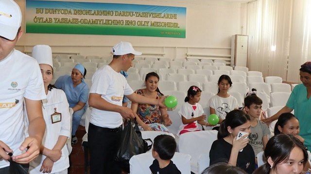 Hár jılı 1-iyun sánesi Xalıqaralıq balalardı qorǵaw kúni sıpatında keń túrde belgilenip kelinbekte. Usı sáne múnásibeti hám«Jańa Ózbekstan jasları, birleseyik!» súreni astında ótkerilip atırǵan «Studentler báhári» festivalı sheńberinde Samarqand mámleketlik veterinariya medicinası, sharwashılıq hám biotexnologiyalar universiteti Nókis filialı jámááti Qaraqalpaqstan Respublikası Kóp tarmaqlı balalar medicinalıq reabilitaciyalıq orayındaǵı balalardı ájayip bayram múnásibeti menen qızǵın túrde qutlıqlap, olarǵa bayram sawǵaların tapsırdı.