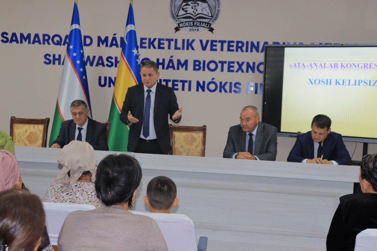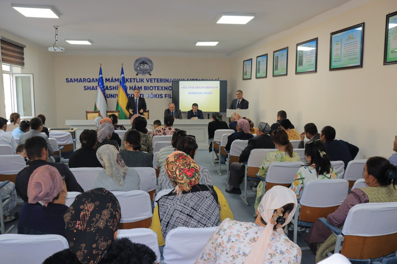 Usı jıldıń 13-sentyabr kúni Samarqand mámleketlik veterinariya medicinası, sharwashılıq hám biotexnologiyalar universiteti Nókis filialında 1-kurs studentleri ata-anaları qatnasıwında «Ata-analar kongressi» ótkerildi.