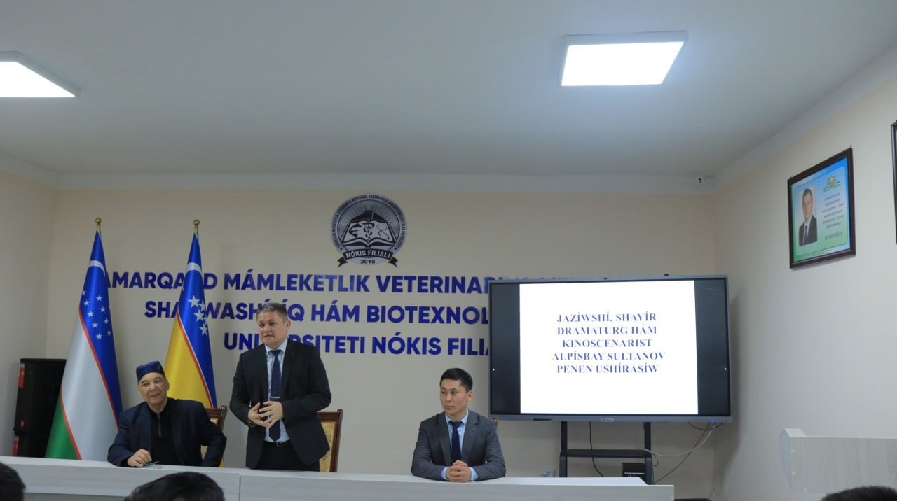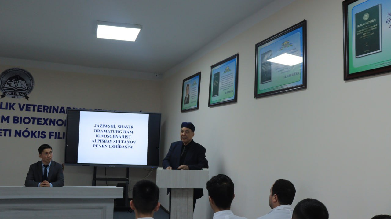 Samarqand mámleketlik veterinariya medicinası, sharwashılıq hám biotexnologiyalar universiteti Nókis filialında Qaraqalpaqstan xalıq jazıwshısı, ádebiy sınshı, shayır hám dramaturg Alpısbay Sultanov penen ushırasıw ótkerildi. Filial direktorı ilájdı ashıp berdi hám qaharmanımızdıń ómir jolı hám dóretiwshiligi tuwralı aytıp ótti. Bunnan soń A.Sultanov sózge shıǵıp, student-jaslarǵa ádebiyatqa qashan hám qalay kirip kelgenligi, dóretken shıǵarmaları, dramaturg sıpatındaǵı islegen miynetleri tuwralı aytıp berdi.