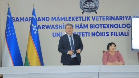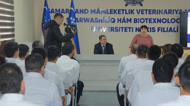 Samarqand mámleketlik veterinariya medicinası, sharwashılıq hám biotexnologiyalar universiteti Nókis filialında Xalıqaralıq bólimniń baslaması menen Evropa Awqamınıń Erasmus+ baǵdarlaması ushın Joqarı bilimlendiriw reformaları boyınsha milliy ekspert hám Kásiplik bilimlendiriw boyınsha Evropa bilimlendiriw fondı ushın Milliy eksperti A.Tureniyazova qatnasıwında ushırasıw shólkemlestirildi. Usı ushırasıwdı filial direktorı A.Esimbetov kiris sózi menen ashıp berdi.