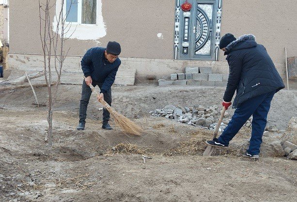 Sonıń menen birge bir topar kewilli student-jaslar «Gúlzar» MPJ aymaǵında jasap atırǵan nágiran, jalǵız baslı kekselerdiń úyi átirapında tazalaw jumısların alıp barmaqta. Mine usınday iygilikli jumıslar negizinde máhállelerdi jáne de abat etiw hám xalqımızdıń keypiyatın kóteriw, mehir-miriwbet hám shúkirshilik sezimlerin bekkemlew sıyaqlı iygilikli maqset jatadı. Abadanlastırıw hám kókelemzarlastırıw jumısları shólkemleskenlik penen alıp barılmaqta.