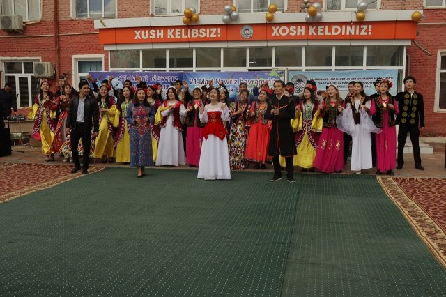 Dáslep, iláj sheńberinde milliy taǵamlar kórgizbesi shólkmelestirilip, dasturxan milliy taǵamlar menen bezeldi. Kelgen miymanlar olardan dám tattı hám baha berdi. Student-jaslar arasında milliy oyınlar boyınsha jarıs ótkerildi. Ilájdıń kirisiw bóliminde filial direktorı A.Esimbetov hám Qaraqalpaqstan Respublikası Ministrler Keńesi Baslıǵınıń jaslar siyasatı, sociallıq rawajlandırıw hám ruwxıy-aǵartıwshılıq isleri boyınsha orınbasarı B.Ótemuratovlar sózge shıǵıp, bayram múnásibeti menen jıynalǵanlardı qutlıqlap, xalqımızdıń girbińsiz arzıw-úmitleri, iygilikli tilekleri hám pák sezimlerin ózinde sáwlelendirgen bul ullı áyyamdı múnásip tárizde belgileu úrdiske aylanǵanlıǵı, Nawrız jaslardı doslıq, insanıylıq, miyrim-shápáátli bolıw sıyaqlı iygilikli pazıyletlerge iye bolıwǵa shaqıratuǵın bayram ekenligi haqqında toqtalıp ótti.