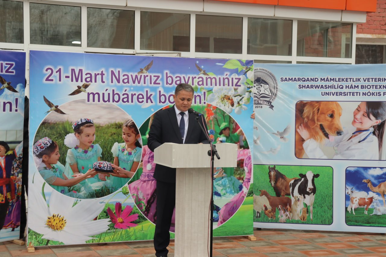 Ázelden xalqımızǵa ruwxıy kúsh-quwat berip kelgen, hámme ıntıqlıq hám saǵınısh penen kútip, shadlıqqa bólenip qarsı alatuǵın, kewilimiz gáwhári Nawrız áyyamınıń ájayip keypiyatı ele elimiz boylap gezip júripti. Atap aytqanda, Samarqand mámleketlik veterinariya medicinası, sharwashılıq hám biotexnologiyalar universiteti Nókis filialında «Álem nurǵa tolsın seniń menen, Nawrız!» súreni astında bayram ilájı joqarı dárejede shólkemlestirildi.
