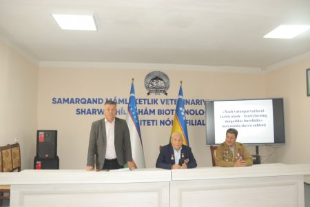 Usı jıldıń 9 aprel kúni Samarqand mámleketlik veterinariya medicinası, sharwashılıq hám biotexnologiyalar universiteti Nókis filialınıń májilisler zalında student-jaslar qatnasıwında «Jas watansúyiwshilerdi tárbiyalaw- veteranlardıń parızı» atamasında ushırasıw ótkerildi.