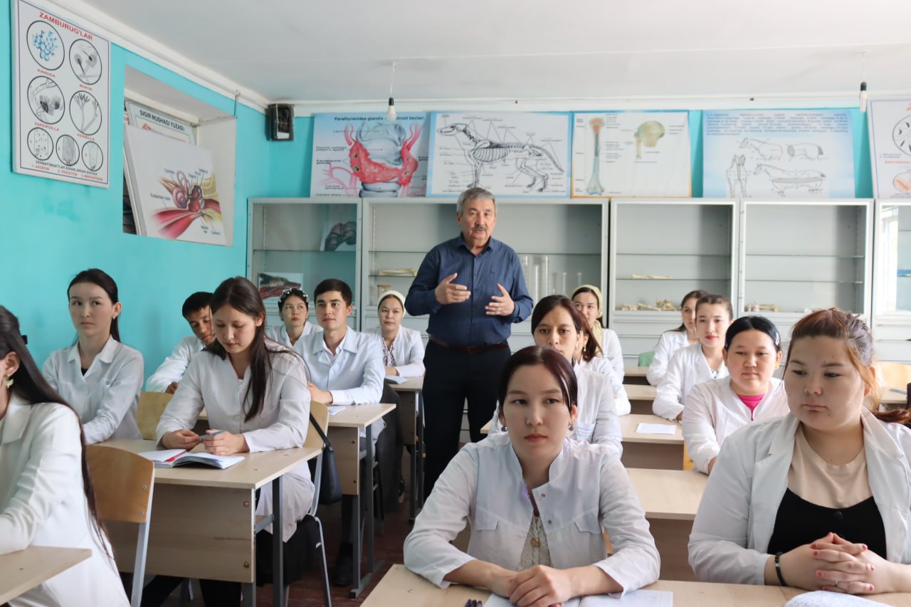 Qazaqstanlı professor veterinariya diagnostikasi va laboratoriya isleri baǵdarında bilim alıp atırǵan 3-kurs studentlerine veterinariya tarawı boyınsha lekciya ótti. –Nókis qalasına saparımdı ekinshi márte ámelge asırdım– deydi A.Mavlonov – filialdaǵı kásiples oqıtıwshılar hám studentler menen jaqsı doslıq qatnasıqların ornatıp alǵanbız. Bul saparı lekciyalar dawamında filial studentleriniń bilim alıwǵa bolǵan umtılıwları jáne kúsheygenliginiń gúwası boldım. Eki mámleket joqarı bilimlendiriw tarawında nátiyjeli birge islesiwdi jolǵa qoyıp, iygilikli maqsetlerge qaray jedel adımlap atırǵanı álbette bizge úlken motivaciya baǵıshlamaqta. Bunnan aldın da Qazaqstanlı professorlar tárepinen studentlerge sabaq ótilgen edi. Student jaslar professordıń lekciyalarına belsene qatnasıp, bilim hám kónlikpelerge iye boldı. Maǵlıwmat ornında, áyne kúnlerde filialımızdıń «Zooinjeneriya» kafedrasınıń úlken oqıtıwshısı Z.Dawletova Qazaqstan milliy agrar izertlew universitetinde tájiriybe arttırmaqta.