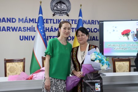 Búgin Samarqand mámleketlik veterinariya medicinası, sharwashılıq hám biotexnologiyalar universiteti Nókis filialında «Haywanlar anatomiyası, fiziologiyası hám bioximiyası» kafedrasınıń assistent-oqıtıwshısı, Málimleme resurs orayı bólimi baslıǵı lawazımında islegen Xalmuratova Jumagúl Mafurovanıń dúnyaǵa kelgen kúni múnásibeti menen qutlıqlaw ilájı shólkemlestirildi.