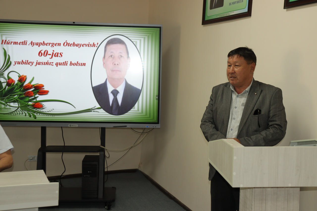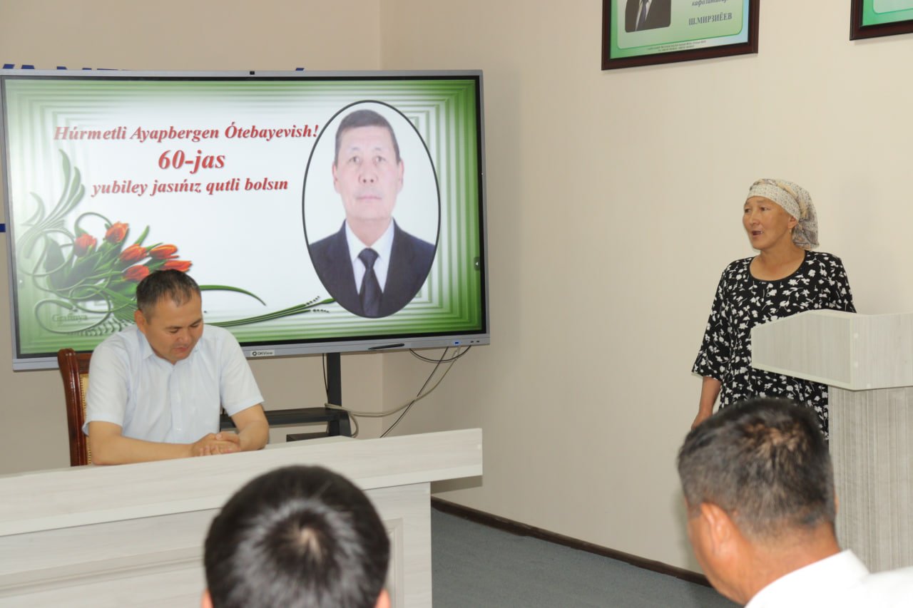 Kúni keshe filial oqıtıwshısı J.Xalmuratovanıń napaqa jasına tolıwı belgilenip, onıń mánziline ájayip tilekler bildirilgen edi. Quwanıshlı kúnler izbe-iz kelip búgin filialdıń jası úlken aǵalarınan biri bolǵan Ayapbergen aǵanıń tuwılǵan kúni múnásibeti menen bayram ilájı ótkerildi. Óz ornında haq kewil, barqulla adamlar menen jıllı júzlilik penen kórisip, jaqsı múnásibette bolatuǵın, miyirman Ayapbergen aǵanı shın kewilden qutlıqlaymız. Sizge bekkem salamatlıq, shańaraǵıńızǵa amanlıq, qálbińizge qáterjamlıq tileymiz.