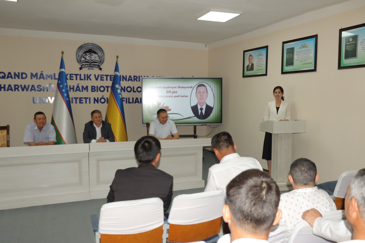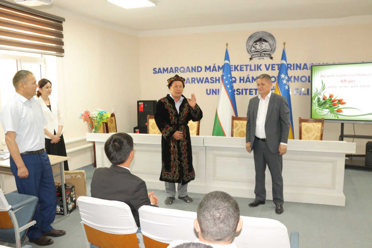 Búgin Samarqand mámleketlik veterinariya medicinası, sharwashılıq hám biotexnologiyalar universiteti Nókis filialınıń xızmetkeri Kamalov Ayapbergen Ótebaevichtiń 60 jastı qarsı alıwı múnásibeti menen bayram ilájı shólkemlestirildi. Filial direktorı A.Esimbetov sózge shıǵıp, A.Kamalovtı múbárek jası menen qutlıqlap, onıń jumısına juwapkershilikli xızmetker ekenin, adamgershiligi, miynet jámááti menen kirisimli múnásibet ornata alǵanın, barqulla qolınan kitap túspeytuǵın kitapqumar insan ekenin ayrıqsha atap ótti.
