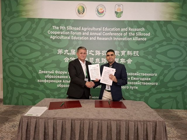 Aldın xabar bergenimizdey, Tashkent qalasında «Jipek jolı awıl xojalıǵı bilimlendiriwi hám ilimiy-izertlew innovaciyaları Alyansı»nıń 9 jıllıq konferenciyası ótkerildi. 9-iyul kúni start alǵan iláj 11-iyulǵa shekem bolıp ótiwi rejelestirilgen edi. Sırt el joqarı oqıw orınlarınıń wákilleri hámde jergilikli wákillerdi bir jerge jámlegen iláj joqarı dárejede shólkemlestirildi. Konfrensiya sheńberinde elimizdegi JOOları hám Qıtay, Qazaqstan hám Pákistannıń awıl xojalıǵı institutları ortasında kóplegen birge islesiw memorandumları imzalandı. Atap aytqanda, Samarqand mámleketlik veterinariya medicinası, sharwashılıq hám biotexnologiyalar universiteti Nókis filialı konferenciyanıń ekinshi kúninde Qıtay Xalıq Respublikasınıń Yangling kásip-óner hám texnikalıq kolledji hámde Qazaqstan Respublikasınıń Semey qalasındaǵı Shakarim atındaǵı universiteti menen birge islesiw memorandumın imzalawǵa erisken edi. Búgin de sırt mámleketlerden kelgen wákiller menen sóylesiwler alıp barılıwı dawam etip, unamlı nátiyjelerge erisildi.