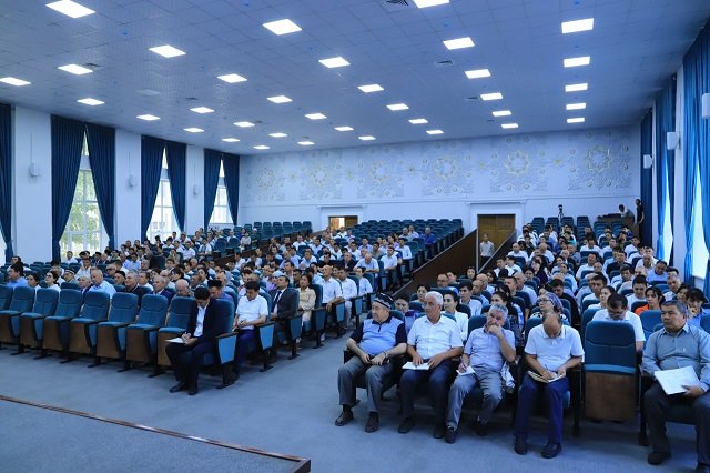 Samarqand mámleketlik veterinariya medicinası, sharwashılıq hám biotexnologiyalar universitetinde rektor, professor Y.Xudaynazar basshılıǵında jańa oqıw jılına tayarlıq hám keleshkte ámelge asırılatuǵın jumıslar boyınsha ushırasıw shólkemlestirildi. Onda universitet hám onıń filialları, texnikum hámde akademiyalıq licey jámááti qatnastı.