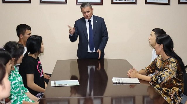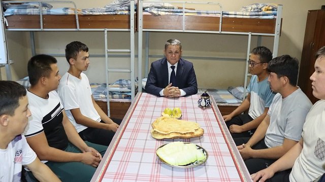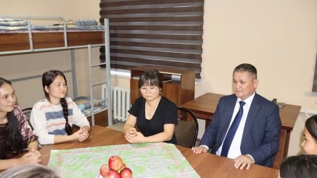 Studentler ózleri ushın jaratıp berilgen sharayatlardan tolıq qanaatlanǵanın atap ótti. Direktor sáwbetlesiw dawamında áyne kúnlerde 6 qabattan ibarat 400 orınǵa mólsherlengen jataqxana qurılısına jaz máwsiminde start berilip, process dawam etip atırǵanın ayrıqsha atap ótti. — Studentlerdi turaq jay menen támiyinlew hám zárúr qolaylıqlardı jaratıwǵa háreket etemiz, eger sizler hám ata-anańız jasaw sharayatıńızdan kewili tolsa bizler de qáterjam bolamız — deydi Adilbay Esimbetov.