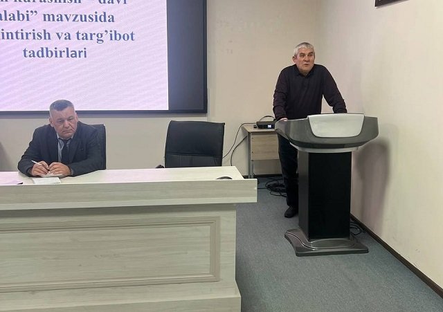 Usı jıldıń 30-oktayabr kúni Samarqand mámleketlik veterinariya medicinası, sharwashılıq hám biotexnologiyalar universiteti Nókis filialında «Jawızlıqqa qarsı aǵartıwshılıq penen gúresiw -dáwir talabı» temasında úgit-násiyat ilájı ótkerildi. Usı ilájda Ózbekstan Respublikası Din isleri boyınsha komitetiniń Qaraqalpaqstan Respublikası aymaqlıq basqarması xızmetkeri N.Jamalov, Qaraqalpaqstan Respublikası IIM Terrorizm hám ekstremizmge qarsı gúresiw basqarmasınıń xızmetkeri S.Tanirbergenov, filial profilaktika inspektorı Q.Qayıpnazarov hámde student-jaslar qatnastı.