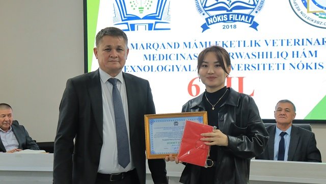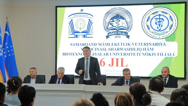 Búgin, 13 –noyabr Samarqand veterinariya medicinası instituti Nókis filialı (házirgi kúnde Samarqand mámleketlik veterinariya medicinası, sharwashılıq hám biotexnologiyalar universiteti Nókis filialı )shólkemlestirilgen kún. Usı sáne múnásibeti menen filialda oqıw dárgayınıń 6 jıllıǵı belgilendi. Iláj basında filial direktorı, professor A.Esimbetov sózge shıǵıp, filial tariyxı, shólkemlestirilgeninen baslap búgingi kúnge shekem erisken hám qolǵa kirgizip kiyatırǵan tabısları, mashaqat hám qısqa dáwirde islengen miynetler haqqında toqtaldı. Jıynalǵanlardı filial shólkemlestirilgenligine 6 jıl tolıwı múnásibeti menen shın kewilden qutlıqladı.