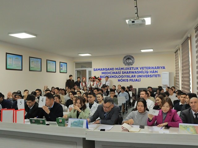 Usı jıldıń 17 dekabr kúni Samarqand mámleketlik veterinariya medicinası, sharwashılıq hám biotexnologiyalar universiteti Nókis filialında "Maǵrifat maydanı» tańlawınıń filial basqıshı bolıp ótti. Tańlaw, JOOlarınıń jasları arasında ádebiyatqa bolǵan qızıǵıwshılıqtı jáne de arttırıw hám ruwxıy jaqtan rawajlanıwǵa járdem beriw maqsetinde shólkemlestirildi.