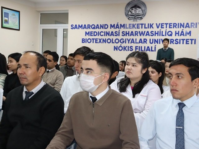 2025-jıl 14-yanvar kúni Samarqand mámleketlik veterinariya medicinası, sharwashılıq hám biotexnologiyalar universiteti Nókis filialında Ózbekstan Respublikası Qurallı Kúshleri shólkemlestirilgenliginiń 33 jıllıǵı hám 14-yanvar - “Watan qorǵawshıları kúni” múnásibeti menen iláj ótkerildi. Ilájda Qurallı Kúshleri nuranıyı, napaqadaǵı mayor A.Xojaniyazov, Nókis qalası qorǵanıw bólimi xızmetkeri D.Allamuratov, filial basshıları, oqıtıwshılar hám studentler qatnastı. Bayram ilájında dáslep Ózbekstan hám Qaraqalpaqstan Respublikalarınıń mámleketlik gimnleri jańladı. Filial direktorı A.Esimbetov kiris sózi menen ilájdı ashıp berdi.