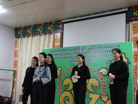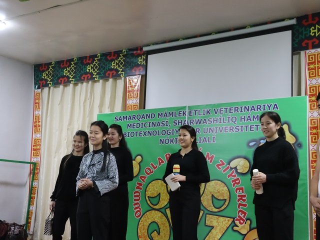 Samarqand mámleketlik veterinariya medicinası, sharwashılıq hám biotexnologiyalar universiteti Nókis filialı student-jaslarınıń sociallıq belsendiligin arttırıw, dóretiwshilik qábiletlerin hám topar bolıp jumıs alıp barıw kónlikpelerin rawajlandırıw maqsetinde «Quwnaqlar hám ziyrekler» kórik-tańlawı ótkerildi. Ilájda jámi 4 komanda qatnastı.