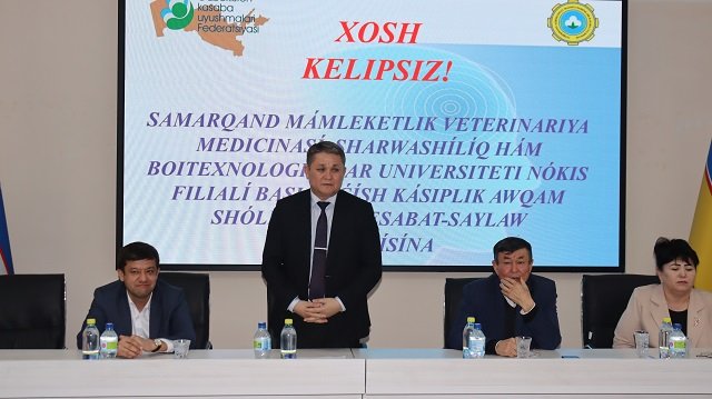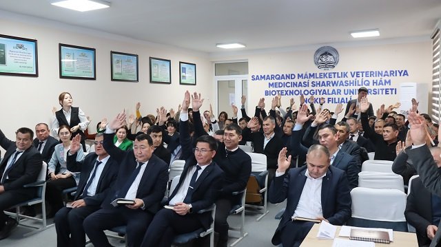 Búgin, 28-fevral kúni Samarqand mámleketlik veterinariya medicinası, sharwashılıq hám biotexnologiyalar universiteti Nókis filialında baslanǵısh kásiplik awqamınıń esabat-saylaw májilisi ótkerildi. Májiliste Ózbekstan kásiplik awqamları Federaciyasınan Qaraqalpaqstan Respublikasına biriktirilgen wákil B.Sultanov, Ózbekstan Agrosanaat kompleksi xızmetkerleri kásiplik awqamı Respublikalıq keńesiniń Qaraqalpaqstan Respublikası boyınsha juwaplı shólkemlestiriwshisi E.Seytnazarov, Ózbekstan kásiplik awqamları Federaciyasınıń Qaraqalpaqstan keńesi shólkemlestiriw jumısları bólimi meńgeriwshisi G.Ilmuradova hám filial professor-oqıtıwshıları hám barlıq xızmetkerler qatnastı.