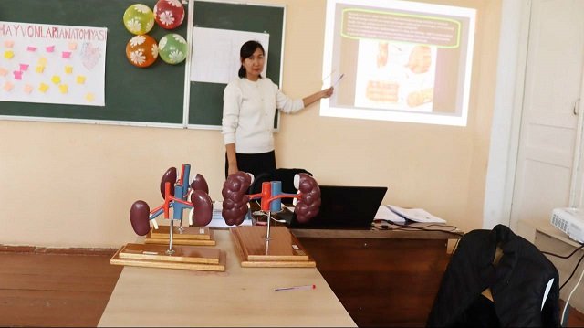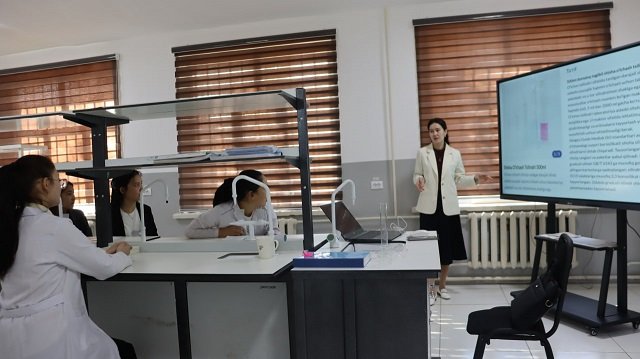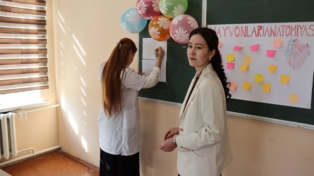 Sabaqlardan biri kafedra oqıtıwshısı B.Muratbaeva tárepinen "Arnawlı laboratoriya texnikaları" atamasında alıp barıldı. Bul sabaqta studentlerge laboratoriya jumıslarında qollanılatuģın arnawlı texnikalar, úskeneler hám metodikalar haqqında tolıq maǵlıwmat berildi. B.Muratbaeva laboratoriya jumısları hám diagnostikası boyınsha studentlerge zárúr bolǵan ámeliy kónlikpelerdi úyretti. Sabaq dawamında studentler laboratoriya texnikasın úyreniwde belsendilik kórsetip, jańa bilimlerdi ózlestiriwge umtıldı.