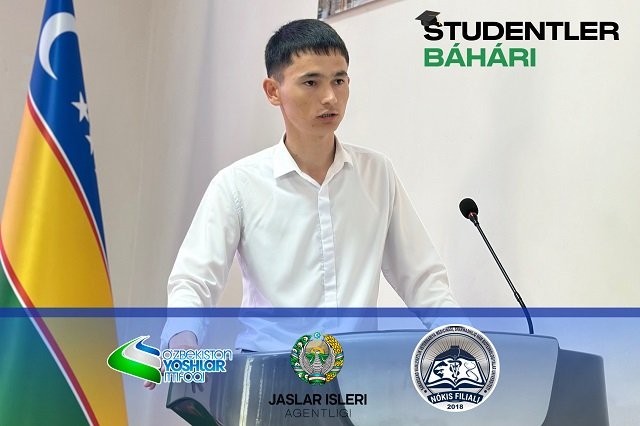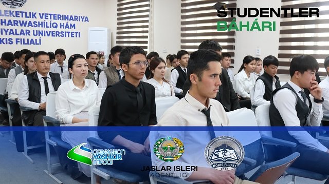 Búgin Samarqand mámleketlik veterinariya medicinası, sharwashılıq hám biotexnologiyalar universiteti Nókis filialında "Studentler báhári" dástúriy festivalına start berildi. Bul festival jaslardıń ilim, innovaciya hám kreativ pikirlew potencialın júzege shıǵarıw, sociallıq belsendiligin arttırıw, intellektuallıq hám sociallıq joybarlarda qatnasıwın támiyinlewge xızmet etpekte. Festival sheńberinde ótkerilgen áhmiyetli ilajlardan biri - "Bilimlendiriw sistemasında - innovaciyalıq ortalıq" atamasındaǵı ilimiy-ámeliy konferenciya boldı. Ilajdı jaslar jetekshisi B.Xojabergenov alıp bardı. Onda filialda bilim alıp atırǵan qábiletli student-jaslar, magistrantlar, sonıń ishinde, "Mırza Ulıǵbek miyrasxorları" tańlawınıń respublikalıq basqıshına jollama alǵan qábilet iyeleri óz ilimiy-innovaciyalıq qollanbaların hám joybarların usındı.