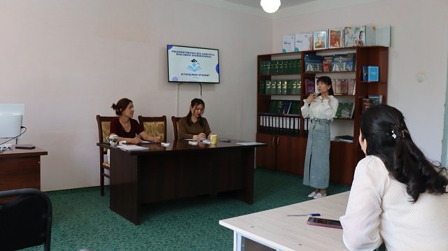 Usı ilajlar sheńberinde ótkerilgen "Kitapqumar student" tańlawı da jaslardıń qálbinde kitapqa bolǵan súyispenshilikti jáne de arttırıw, kitap oqıwǵa bolǵan qızıǵıwshılıqtı kúsheytiw hám olardıń pikirlew sheńberin keńeytiwge xızmet etti. Ilajdı Málimleme-resurs orayınıń baslıǵı Z.Erlepesova ashıp berdi. Tańlawda studentler eki shárt tiykarında bellesip, óz bilim hám sheberliklerin kórsetti.