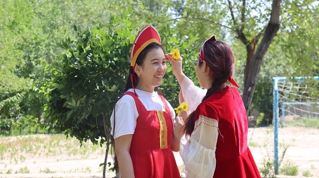 Ilaj dawamında student-qızlar - hár qıylı milletke tiyisli, qaraqalpaq, qazaq hám rus xalıqlarınıń milliy kiyimlerinde filial aymaǵında seyil etip júrdi. Olar tek ǵana ózleriniń milliy lipasların kórsetip qoymastan, al bul arqalı óz-ara doslıq, milletleraralıq tatıwlıq hám mádeniy hár túrlilikti sáwlelendirdi.