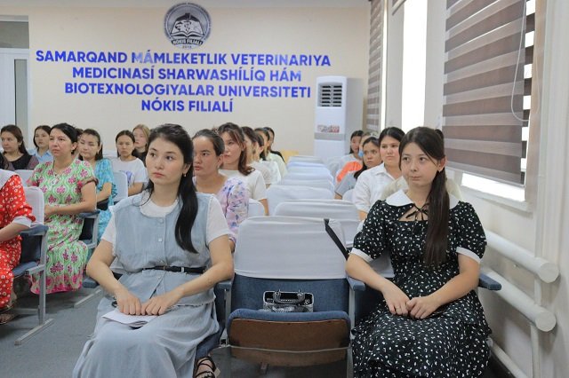 Usı múnásibet penen Samarqand mámleketlik veterinariya medicinası, sharwashılıq hám biotexnologiyalar universiteti Nókis filialında student-qızlar arasında "Jaslardı shańaraqqa tayarlaw" atamasında seminar shólkemlestirildi. Ilajdı Jaslar máseleleri hám ruwxıy-aǵartıwshılıq isleri boyınsha direktor orınbasarı X.Abdijaliyev ashıp berdi. Ilajda filialdıń hayal-qızlar máseleleri boyınsha másláhátshisi Z.Dawletova tárepinen shańaraqlıq turmısqa tayarlıq, salamat shańaraq qurıw, óz-ara húrmet, sabır-taqat hám miyrim-shápáát sıyaqlı qádiriyatlar haqqında hár tárepleme túsinikler berildi. Seminar dawamında filial psixologı qatnasıwında studentler ushın psixologiyalıq testler hám interaktiv oyınlar shólkemlestirildi. Bul bolsa studentlerdiń belsendiligin arttırıp, olarda ózin-ózi túsiniw, pikir almasıw hám sociallıq kónlikpelerdi qáliplestiriwge xızmet etti. Ilaj ashıqtan-ashıq sóylesiw hám jıllı ortalıqta ótip, qatnasıwshılarda úlken tásir qaldırdı.