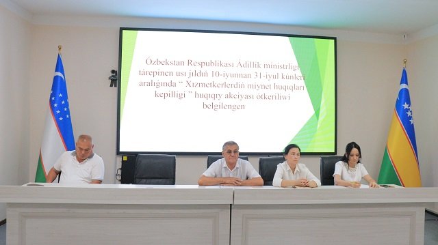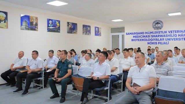 Mámleketimizde insan huqıqları menen erkinliklerin támiyinlew, xızmetkerlerdiń nızamlı máplerin qorǵaw mámleketlik siyasattıń tiykarǵı baǵdarlarınan biri bolıp esaplanadı. Usı maqsette Ózbekstan Respublikası Ádillik ministrligi tárepinen usı jıldıń 10-iyuninen 31-iyuline shekem "Xızmetkerlerdiń miynet huqıqlarınıń kepilligi" atamasında respublika kóleminde huqıqıy úgit-násiyatlaw akciyası ótkerilmekte. Usı baslama sheńberinde Samarqand mámleketlik veterinariya medicinası, sharwashılıq hám biotexnologiyalar universiteti Nókis filialında huqıqıy-aǵartıwshılıq ushırasıwı shólkemlestirildi. Ilajda filial basshıları, professor-oqıtıwshılar hám xızmetkerler qatnastı.