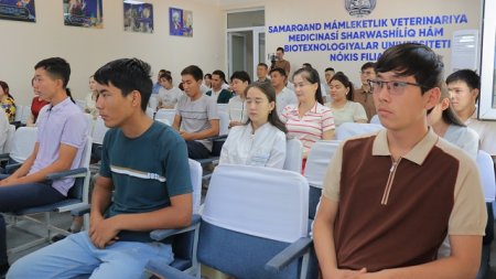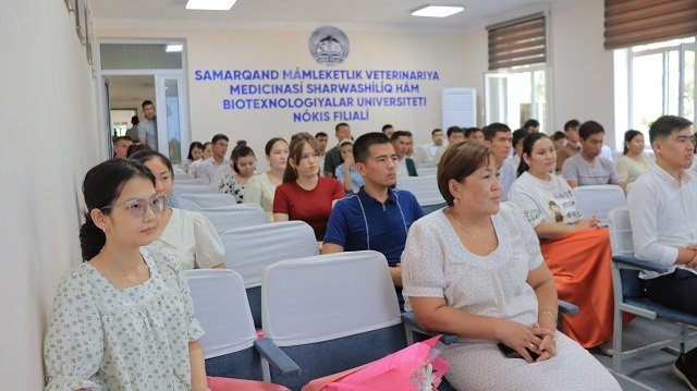 Samarqand mámleketlik veterinariya medicinası, sharwashılıq hám biotexnologiyalar universiteti Nókis filialında "Áhmiyetli 90 kún" sheńberindegi gezektegi ruwxıy-aǵartıwshılıq ilaj - "Dóretiwshi hám jaslar" atamasındaǵı qızǵın ushırasıw bolıp ótti. Ilaj Málimleme-resurs orayı xızmetkerleriniń baslaması menen shólkemlestirilip, bárshege jıllı sezimler baǵıshladı. Ushırasıwdıń miymanı - Ózbekstan hám Qaraqalpaqstan Jazıwshılar awqamınıń aǵzası, júreginen tuwǵan hár bir qatardı xalıqtıń dártine aylandırıp jazatuǵın talantlı shayır S.Sırǵabaeva boldı. Ilajdı filialdıń ilimiy isler hám innovaciyalar boyınsha direktor orınbasarı Sh.Avezimbetov kiris sóz benen ashıp, bunday ruwxıy sóylesiwler jas áwlad ushın turmıslıq sabaq ekenin atap ótti.