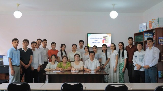 "Kitap atın tap!" dep atalǵan viktorina Málimleme-resurs orayınıń baslaması menen shólkemlestirilip, qatnasıwshılardı kitapqa bolǵan mehir, tapqırlıq hám pikirlew tiykarında sınaqtan ótkerdi.
