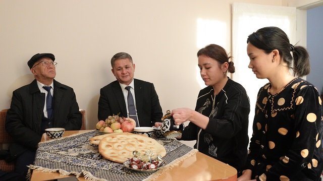 Bunnan soń, ruwxıy sapar filialda dawam etti. Miymanlar filial háwlisinde nan hám duz benen kútip alınıp, dáslep studentlerdiń dóretiwshilik jumısları kórsetilgen kórgizbe menen tanıstı.