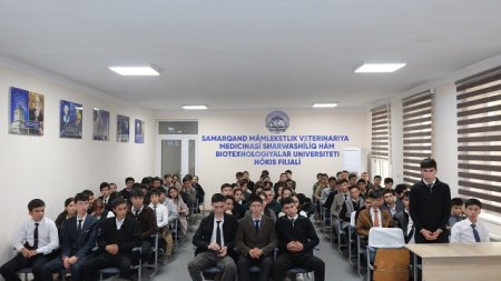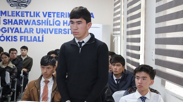 Samarqand mámleketlik veterinariya medicinası, sharwashılıq hám biotexnologiyalar universiteti Nókis filialında direktor A.Esimbetov student-jaslar menen qızǵın ushırasıw ótkerdi. Ilajda filialda bilim alıp atırǵan hár qıylı baǵdardaǵı studentler qatnasıp, óz pikir hám usınısların ashıq-aydın bildiriw imkaniyatına iye boldı.