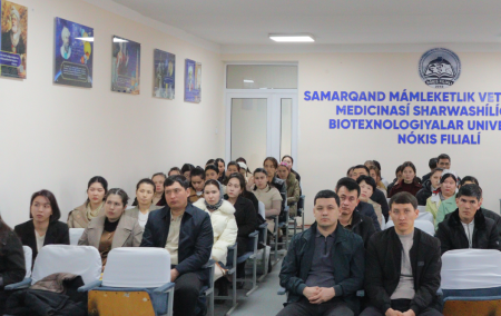 "Jaslar kúni" múnásibeti menen Samarqand mámleketlik veterinariya medicinası, sharwashılıq hám biotexnologiyalar universiteti Nókis filialında student-jaslar qatnasıwında ashıq ushırasıw shólkemlestirildi. Ilaj qızǵın hám erkin pikirlesiw ruwxında ótip, jaslardıń pikir-usınısları, umtılısları hám keleshektegi rejeleri keńnen dodalandı. Ushırasıw dawamında filial direktorı A.Esimbetov student-jaslar menen tikkeley sáwbetlesip, olardıń oqıw processi, ilimiy izlenisleri hám kúndelikli jumısına baylanıslı máselelerge ayrıqsha itibar qarattı.