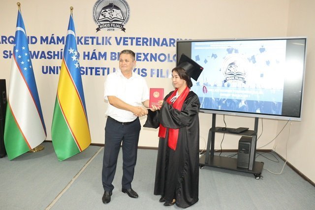 20 июля текущего года в Нукусском филиале Самаркандского государственного университета ветеринарной медицины, животноводства и биотехнологии под девизом «Белой дороги, дорогие выпускники!!» состоялась церемония вручения дипломов выпускникам 2023-2024 учебного года. В мероприятии приняли участие руководство филиала, руководство Комитета ветеринарии и развития животноводства Республики Каракалпакстан, родители, профессорско-преподавательский состав, аспиранты.