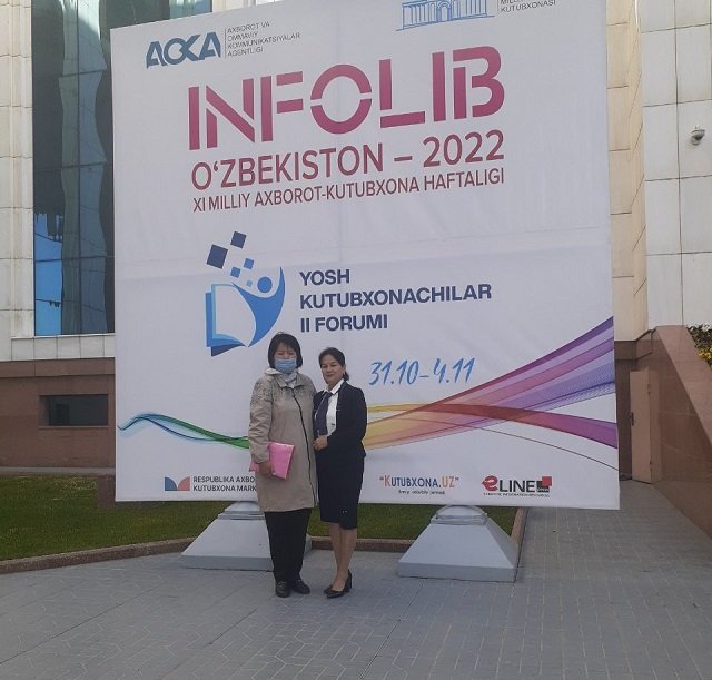 Тошкент шаҳрида “INFOLIB UZBEKISTAN – 2022” XI Миллий ахборот-кутубхона ҳафталиги бўлиб ўтмоқда. Алишер Навоий номидаги Ўзбекистон Миллий кутубхонасида ўтказилаётган ҳафталик куни кеча старт олди ва ҳафталик очилиши муносабати билан тантанали тадбир бўлиб ўтди. Тадбирда ҳудудий ахборот-кутубхона марказларининг ходимлари, ОТМлари ахборот-ресурс маркази бўлими раҳбарлари, вазирлик ва идоралар, маънавият тарғиботчилари ҳамда талаба-ёшлар иштирок этишди. Жорий йил ўн биринчи марта ташкиллаштирилаётган ушбу ҳафталикта Самарқанд ветеринария медицинаси, чорвачилик ва биотехнологиялар университети Нукус филиалининг Ахборот-ресурс маркази бўлими бошлиғи Жумагул Халмуратова фаол қатнашмоқда.