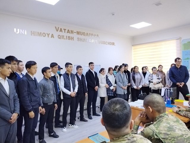 Самарқанд давлат ветеринария медицинаси, чорвачилик ва биотехнологиялар университети Нукус филиалининг 1-босқичида таҳсил олаётган 107-109-гуруҳ талабалари тьюторлар А.Баймуратов ҳамда Ж.Мамбетниязовлар бошчилигида «Маънавий юксалиш ва ватанпарварлик» куни доирасида Шимоли-ғарбий ҳарбий округ, 533-СЧР батальонига ташриф буюрди.