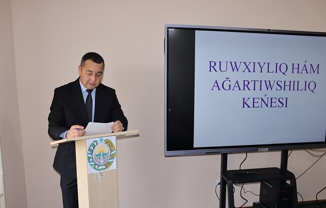 Жорий йил 10 ноябрь куни Самарқанд давлат ветеринария медицинаси, чорвачилик ва биотехнологиялар университети Нукус филиалида «Маънавият ва маърифат Кенгаши»нинг навбатдаги кенгайтирилган йиғилиши бўлиб ўтди. Филиал директори, Кенгаш раиси А.Есимбетов йиғилишни очиб берди ва олиб борди. Йиғилиш давомида филиалда олиб борилаётган маънавий-маърифий тадбирларнинг самарадорлигини янада ошириш масаласи кўриб чиқилди. Шунингдек, Ёшлар билан ишлаш, маънавият ва маърифат бўлими ҳузурида «5 та муҳим ташаббус» марказини ташкил этиш бўйича амалга оширилган ишлар, ТТЖда ва ижарада истиқомат қилаётган талабалар ҳолидан мунтазам равишда хабар олиб бориш, ижара тўловларининг бир қисмини тўлаб бериш тартиби асосида амалга оширилган ишлар натижаси, Ахборот соатларини самарали ташкил этиш ҳамда талабаларнинг «Ижтимоий фаоллик индекси»ни жорий этиш тўғрисидаги 301-сон буйруқ ижроси бўйича ва бошқа тегишли масалалар юзасидан маърузачилар, жумладан, Ёшлар масалалари бўйича ва маънавий-маърифий ишлар бўйича директорнинг биринчи ўринбосари С.Ганиев, Ёшлар билан ишлаш, маънавият ва маърифат бўлими бошлиғи А.Сейткамалов, Ветеринария ва зооинженерия факультети декани А.Каниязовлар сўзга чиқиб, тегишли мавзулар бўйича маъруза қилишди. «Маънавият ва маърифат Кенгаши»нинг навбатдаги кенгайтирилган йиғилиши доирасида келгусида амалга оширилиши лозим бўлган муҳим масалалар бўйича фикр ва мулоҳазалар билдирилди ва режалар белгилаб олинди. Маънавий-маърифий тадбирларнинг самарадорлигини ошириб бориш юзасидан таклифлар билдирилди.